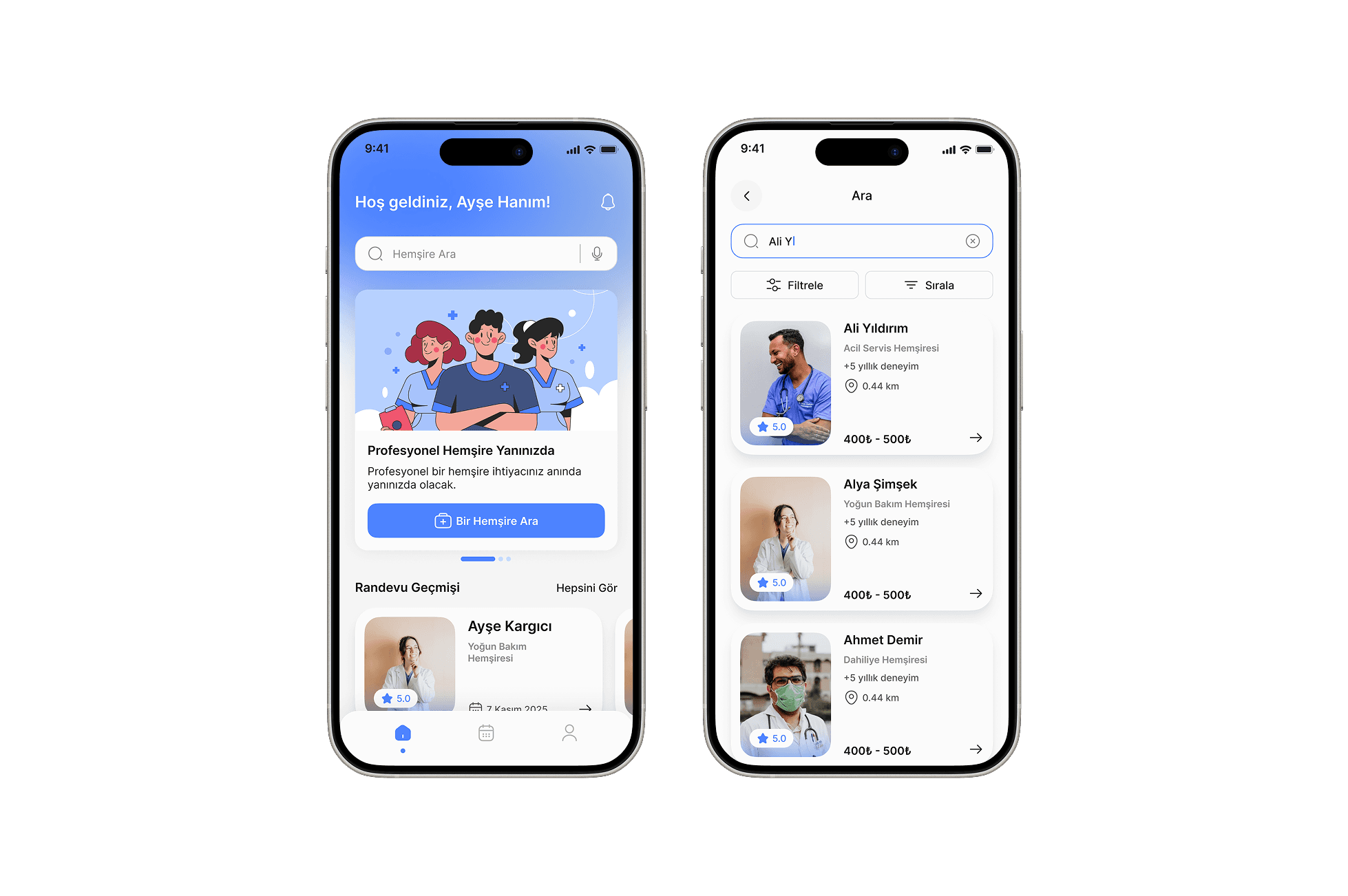 A mobile platform that connects users with verified professional nurses for at-home care. The app makes it easy to search, compare, and book the right nurse based on specialty, experience, rating, distance, and price—bringing reliable healthcare support to users whenever they need it.